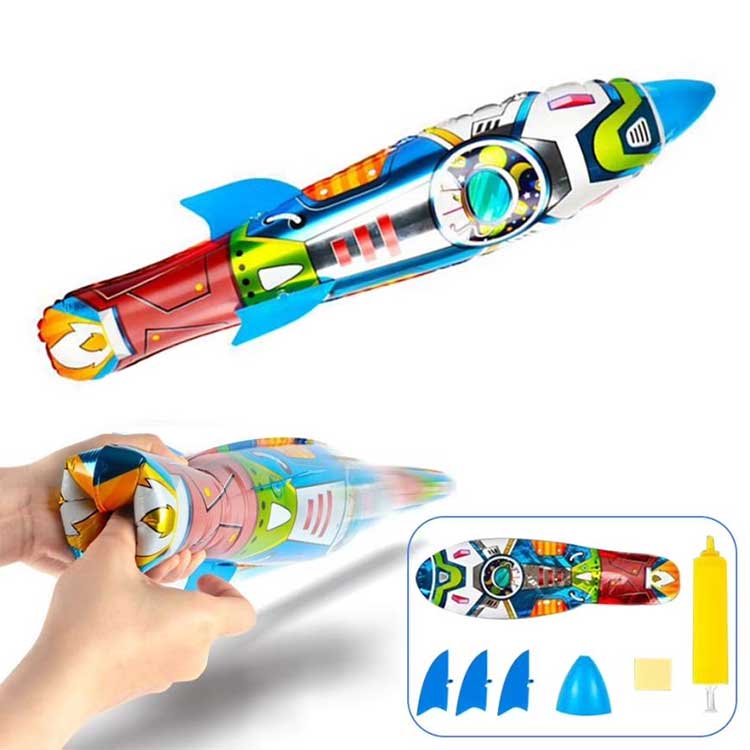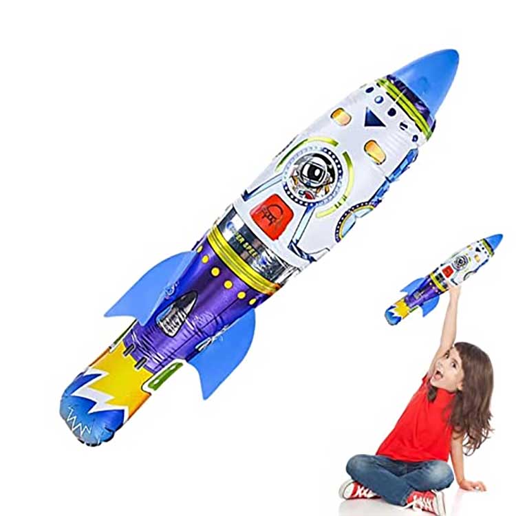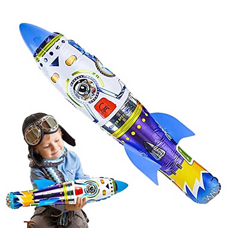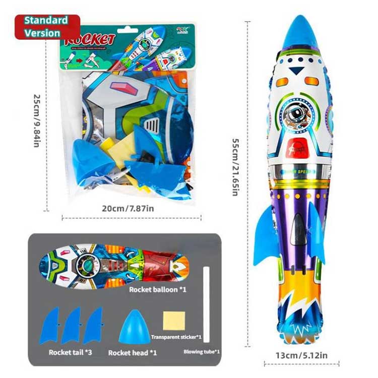 Τρισδιάστατο φουσκωτό μπαλόνι από αλουμινόχαρτο πυραύλων επίσης πολύ ευέλικτο όσον αφορά το παιχνίδι. δεν απαιτεί ηλεκτρικό ρεύμα, απλά πετάξτε το με το χέρι για ισχύ πτήσης. Για να κάνετε τον πύραυλο να πετάξει μακριά, όλα εξαρτώνται από το πόσο ψηλά τον κρατάτε και πόση δύναμη χρησιμοποιείτε όταν τον ρίχνετε, όσο περισσότερη δύναμη και όσο πιο ψηλά τον κρατάτε, τόσο πιο μακριά θα πετάξει.