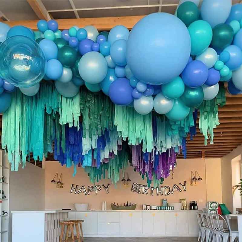 Το Blue Balloon Garland Arch Kit προσφέρει μια ποικιλία από μπλε τόνους, όπως το γαλάζιο, το σκούρο μπλε, το βασιλικό μπλε και το μπλε του ουρανού, για να καλύψουν τις ανάγκες διαφορετικών σκηνών.