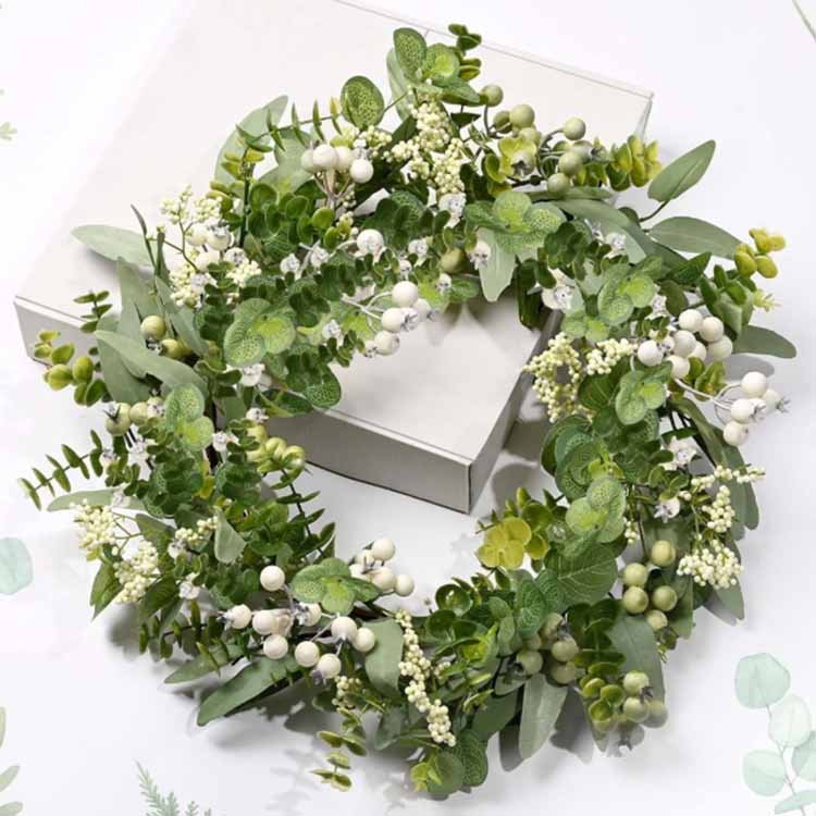Η γιρλάντα διακόσμησης έχει ως κύριο στοιχείο τα φύλλα, με διαφορετικά στυλ ένθετα με διαφορετικά λουλούδια ως διακοσμητικά και το συνολικό σχήμα είναι κυκλικό. Οι φλέβες των φύλλων είναι ευδιάκριτες, δημιουργώντας ένα ζωντανό αποτέλεσμα. Αντέχει στην υπεριώδη ακτινοβολία και δεν ξεθωριάζει. Είναι η κορυφαία επιλογή για τη διακόσμηση του μπροστινού μέρους του σπιτιού ή του τζακιού τα Χριστούγεννα.