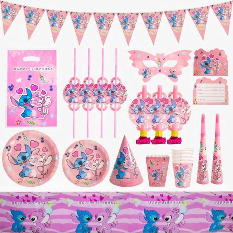 Χάρτινα ρολά 7 ιντσών, χάρτινα ρολά 9 ιντσών, χάρτινα κύπελλα, τριγωνικές σημαίες, προσκλητήρια, φυσητήρες δράκων, ηχεία, καλαμάκια, μάσκες, χάρτινα καπέλα, κουτιά από ποπ κορν, χαρτομάντιλα, τραπεζομάντιλα, τσάντες δώρων, μπλε μαχαίρια, μπλουζ.