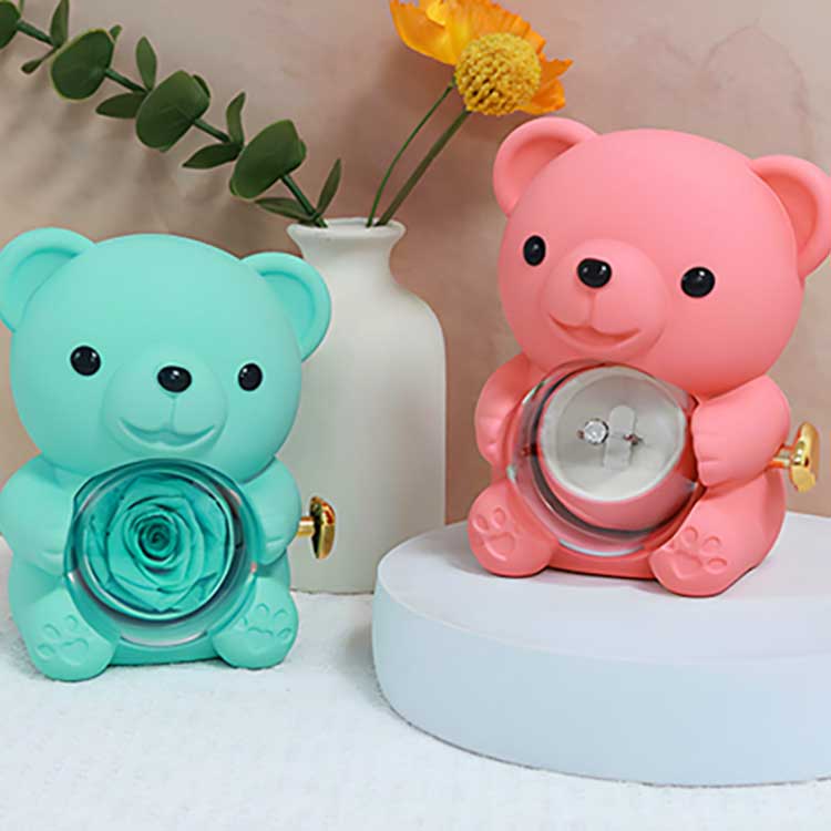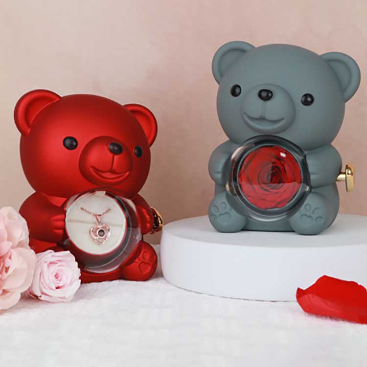 Αυτό το κουτί κοσμημάτων Hug Bear Rose χρησιμοποιείται για επίδειξη σε γραφείο, ράφι ή κομοδίνο. Το πιο εντυπωσιακό χαρακτηριστικό του είναι το διατηρημένο τριαντάφυλλο στο κέντρο. Ανοίγοντας το τριαντάφυλλο αποκαλύπτεται μια θήκη για την αποθήκευση κοσμημάτων, δαχτυλιδιών ή αναμνηστικών.