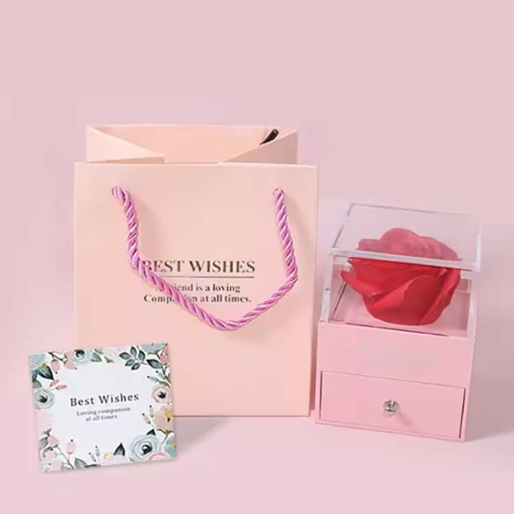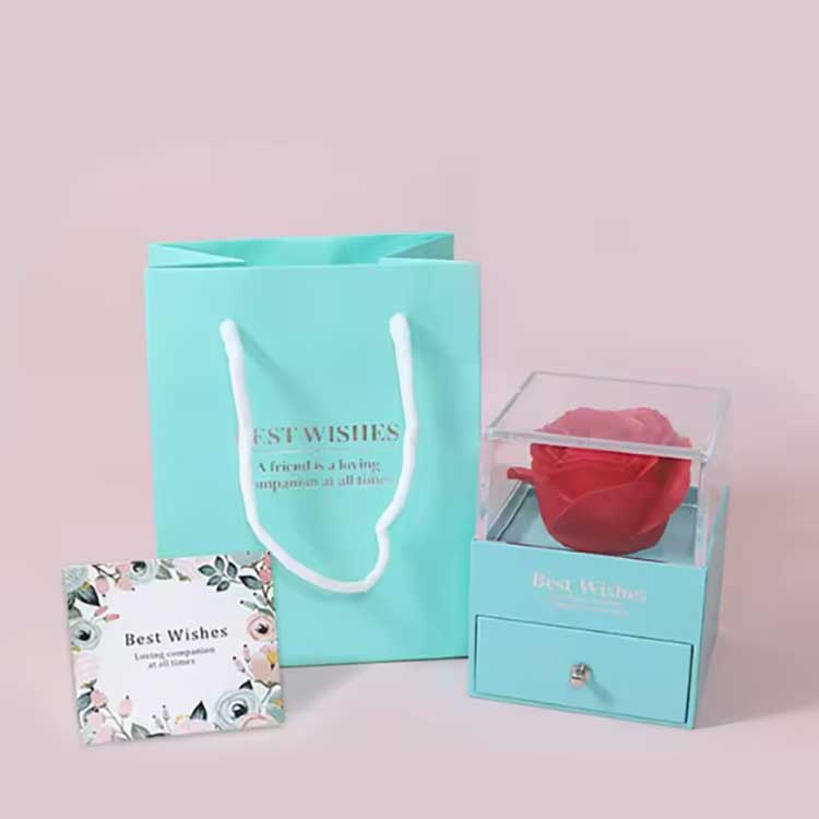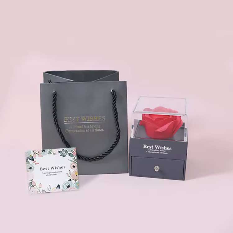 Το Immortal Flower Gift Box είναι ένα δημοφιλές προϊόν. Τα αξεσουάρ του είναι κατασκευασμένα από υλικά υψηλής ποιότητας. Κάθε σετ κουτιών δώρου περιέχει ένα λαμπερό τριαντάφυλλο και εξαιρετικά κοσμήματα. Όταν τα παραλάβετε, μπορείτε να τα χρησιμοποιήσετε απευθείας χωρίς να χρειάζεται να τα τοποθετήσετε μόνοι σας. Μπορούν να εκφράσουν πλήρως τα συναισθήματά σας στους φίλους ή τους συγγενείς σας, κάνοντας την τελετή σας γεμάτη ρομαντισμό και έκπληξη.