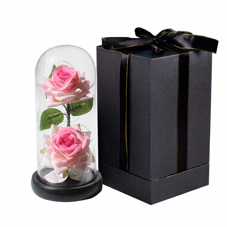 Χρησιμοποιούμε συσκευασία αφρού μέσα στο φωτεινό γαλαξιακό τριαντάφυλλο για την προστασία του γυάλινου θόλου. Η εξωτερική συσκευασία περιλαμβάνει ένα τυπικό μαύρο ή ροζ κουτί και ένα μαύρο κουτί δώρου υψηλής ποιότητας. Οι πελάτες μπορούν να επιλέξουν τη συσκευασία που προτιμούν. Η premium συσκευασία επιτρέπει υψηλότερες τιμές πώλησης και μεγαλύτερα κέρδη.