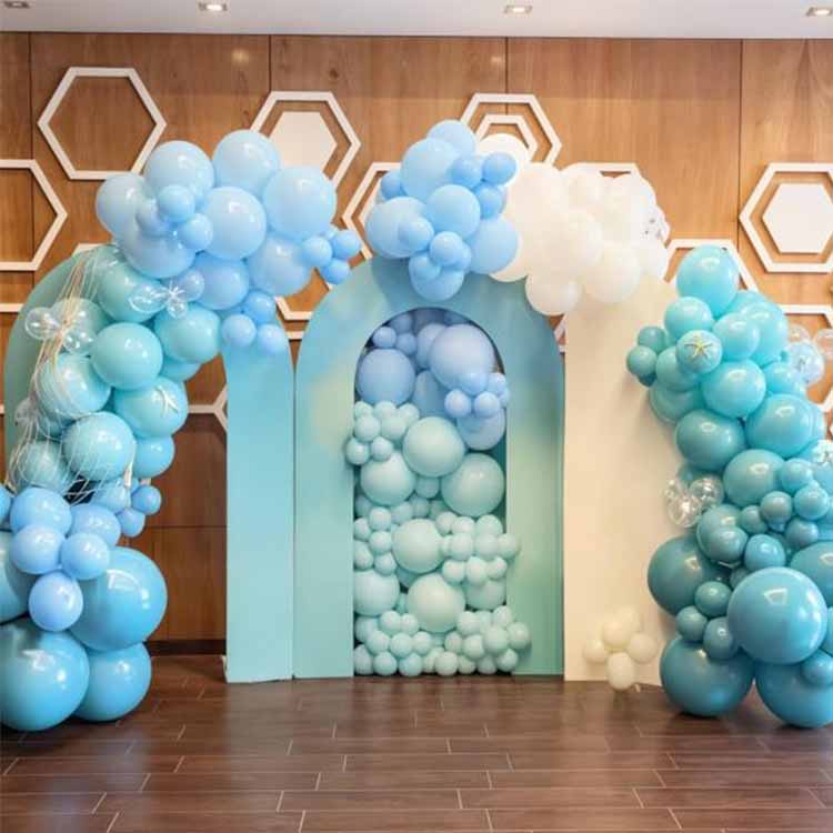 3. Μπαλόνια ειδικών εφέ: Μαργαριταρένια μπλε μπαλόνια (που προσομοιώνουν τις αντανακλάσεις του ωκεανού) και μπαλόνια με παγιέτες (με ενσωματωμένες ασημί ή μπλε πούλιες για προσομοίωση υποβρύχιου αστρικού φωτός)