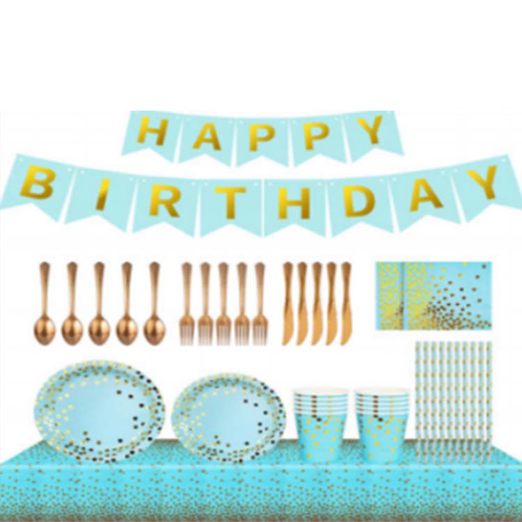 Υλικό: Το σετ σερβίτσιων για πάρτι είναι κατασκευασμένο από πράσινα και φιλικά προς το περιβάλλον υλικά, με εξαιρετικά χαρακτηριστικά ασφαλείας. Μπορεί να αποτρέψει αποτελεσματικά τις γρατσουνιές που προκαλούνται από πτώσεις και να προστατεύσει τους ανθρώπους από τυχαίες συγκρούσεις κατά τη χρήση. Το κομψό χρυσό ανάγλυφο δημιουργεί ένα όμορφο οπτικό αποτέλεσμα και ενισχύει περαιτέρω τη διακοσμητική του αξία.