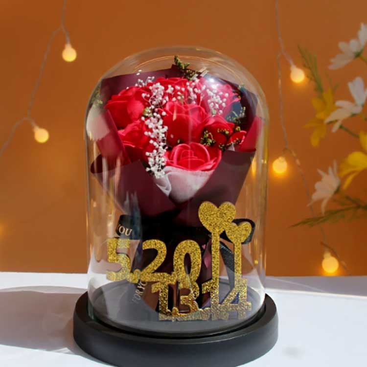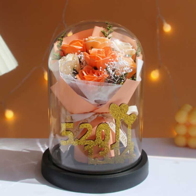 Αυτό το γυάλινο μπουκέτο τριαντάφυλλο έχει σχεδιαστεί για να αποτρέπει το μαρασμό των λουλουδιών και τα τριαντάφυλλα μέσα δεν θα ξεθωριάσουν. Η ανθοδέσμη είναι πολύ ζωντανή, σχεδόν διακρίνεται από τα αληθινά λουλούδια και μπορεί να παρουσιάσει την ομορφιά της ανθοδέσμης πολύ καλά. Στο εσωτερικό, οι χρυσοί αριθμοί 520+1314 αντιπροσωπεύουν τους αριθμούς 520 και 1314, συμβολίζοντας την αγάπη και αναδεικνύοντας τη στοχαστικότητα αυτού του δώρου.
